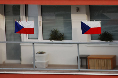 The same balcony a few days later. Czechs have won the second gold medal: