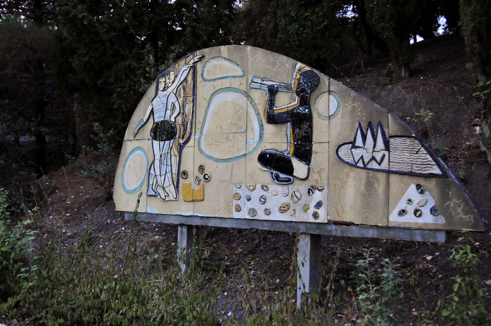 Artek was founded in 1925 as a camp for children suffering from tuberculosis, but gradually grew and became a holiday destination for the most prominent pioneers, the best of the best (and most loyal to their merry socialist nation). It was also a place where celebrities loved to show off in front of cameras – from Soviet leaders Khruschev and Brezhnev, to cosmonauts Gagarin and Tereshkova and foreign VIPs such as Fidel Castro and Indira Gandhi. What could be a beter promo than posing with a bunch of smiling young pioneers on the backdrop of Crimean mountains and the sparkling Black Sea... Of course, everything is big in Ukraine, but the camp territory still amazes by its size. It’s larger than large – even if the expression "pioneer camp" does not evoke just a meadow with several rows of tents to you. According to its website, the camp covers 208 hectares. Kilometres of beaches and parkland – with lovely cypresses, pines, palm trees, laurels and other greenery – intervowen with roads and pathways and interspersed with buildings, playgrounds and swimming pools (and there is even a small artificial ruin). Lots of opportunities for endless walks and for getting lost. ![]() |